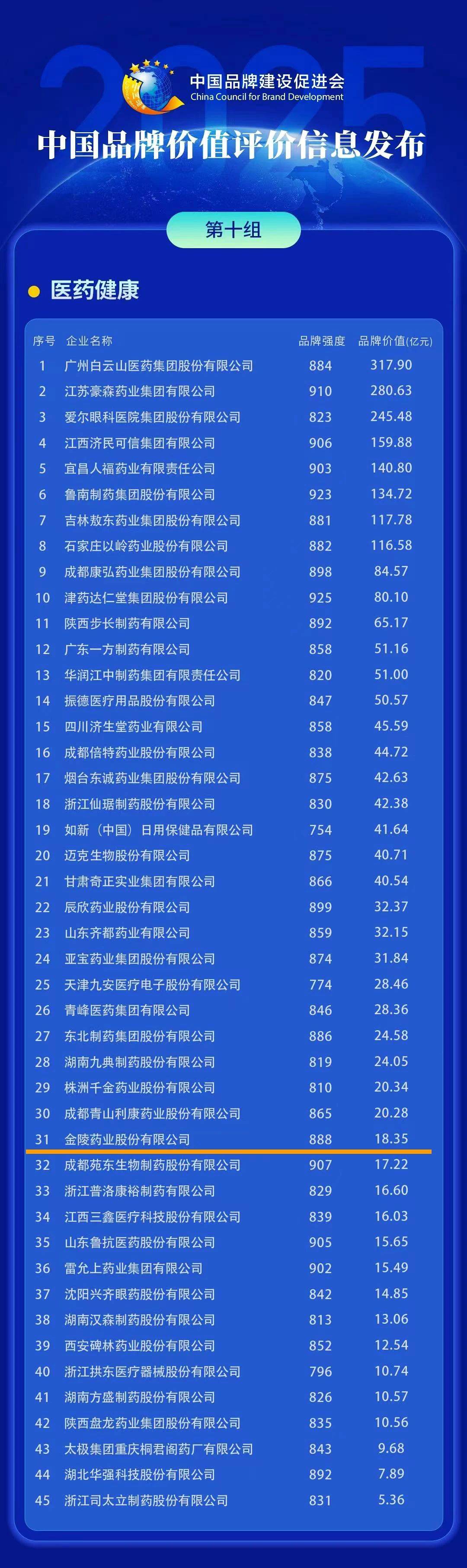5月10日,由中國品牌建設促進會、中國資產評估協(xié)會等權威機構聯(lián)合發(fā)布的《2025中國品牌價值評價信息》揭曉,公司以品牌強度888分,位列醫(yī)藥健康類第13名,較去年躍升11...
